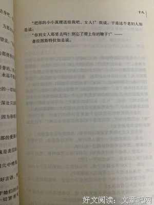 16、智者问傻子,通往幸福的途径是什么?傻子毫不迟疑,就象别人向他打听去附近那个都市之路似的,答曰“自我欣赏,再就是东游西荡.”智者嚷道:“住嘴,你要求太多拉,自我欣赏就够拉!”傻子回答说:“没有一贯的蔑视,又怎能不断的欣赏呢?” ----尼采