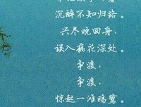 1、风定落花深, 帘外拥红堆雪。 长记海棠开后, 正是伤春时节。 酒阑歌罢玉尊空, 青缸暗明灭。 魂梦不堪幽怨, 更一声啼鴂。 ----《好事近》 2、在将暮未暮的岁月,你微笑着寻找那颗凄楚彷徨的心。病起萧萧两鬓华,卧看残月上窗纱。豆蔻连梢煎熟水,莫分茶...